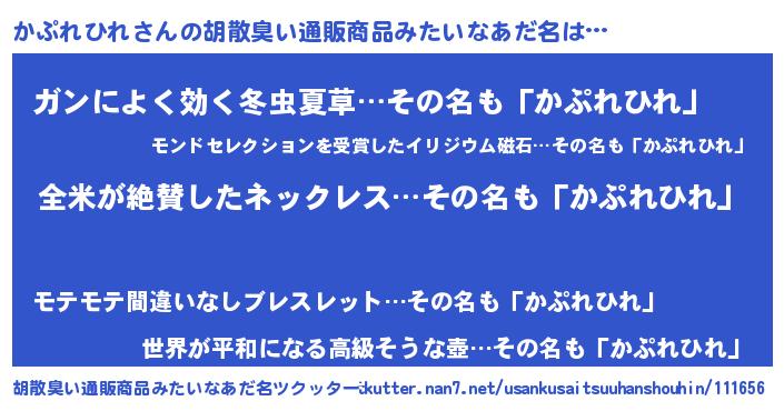 | 意味不明あだ名 | 『とにかく怪しいかぷれひれ』 |
