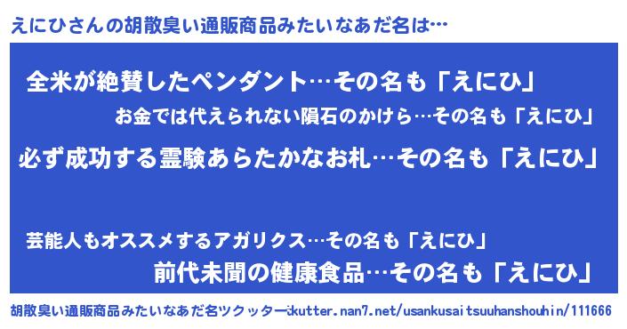 | 意味不明あだ名 | 『ペロリンえにひ』『永久保存えにひ』 |