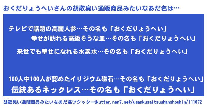 | 意味不明あだ名 | 『永久保存おくだりょうへい』 |
