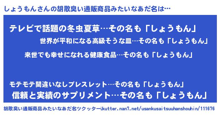| 意味不明あだ名 | 『永久保存しょうもん』『自称しょうもん』 |