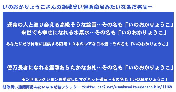 | 意味不明あだ名 | 『住所不定無職いのおかりょうこ(65歳)』 |