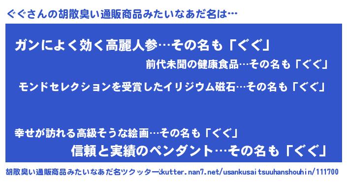 | 意味不明あだ名 | 『ヨモギ科ぐぐ属』『自称ぐぐ』 |