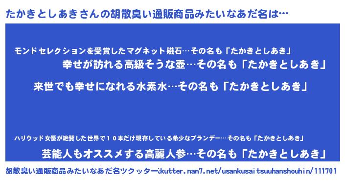 | 伝説のあだ名 | 『古より伝わる勇者たかきとしあき』 |