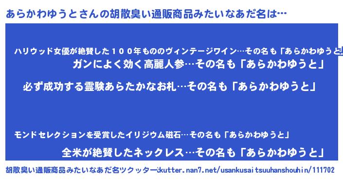 | ヒーロー風カッコイイあだ名 | 『スーパーアラカワユウト』 |