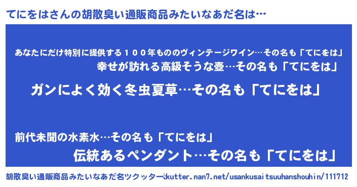 | 意味不明あだ名 | 『自称てにをは』『てにをはフォーエバー』 |
