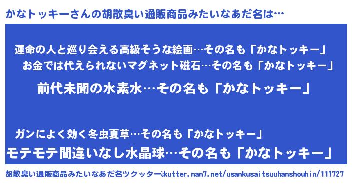 | 意味不明あだ名 | 『永久保存かなトッキー』 |