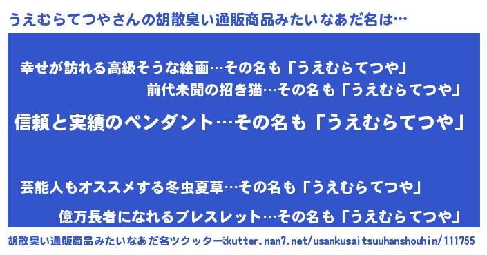 うえむらてつやさんの胡散臭い通販商品みたいなあだ名をツクッター!