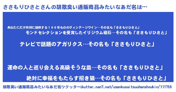 ささもりひさとさんの胡散臭い通販商品みたいなあだ名をツクッター!
