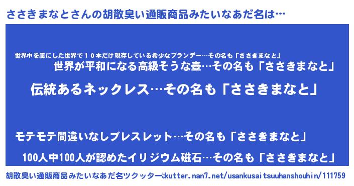 | 意味不明あだ名 | 『とにかく怪しいささきまなと』 |