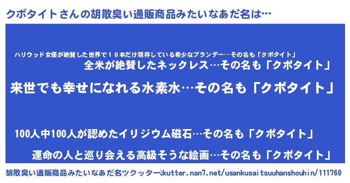 | ヘコむあだ名 | 『クボタイト(震え声)』『酢こんぶ』 |
