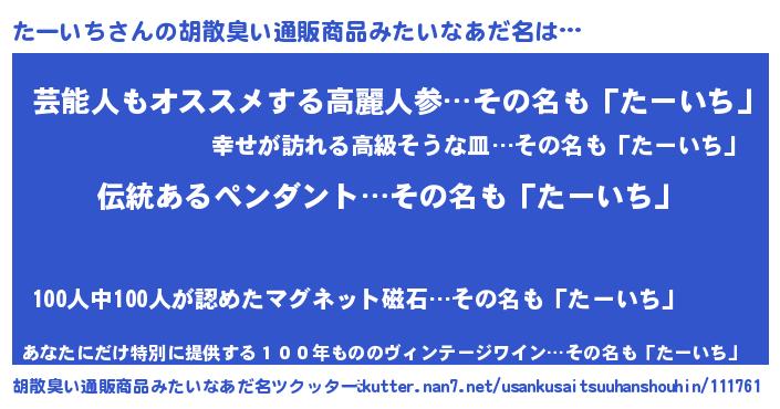 | 意味不明あだ名 | 『とにかく怪しいたーいち』 |
