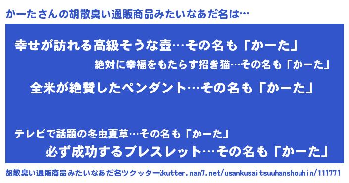かーたさんの胡散臭い通販商品みたいなあだ名をツクッター!