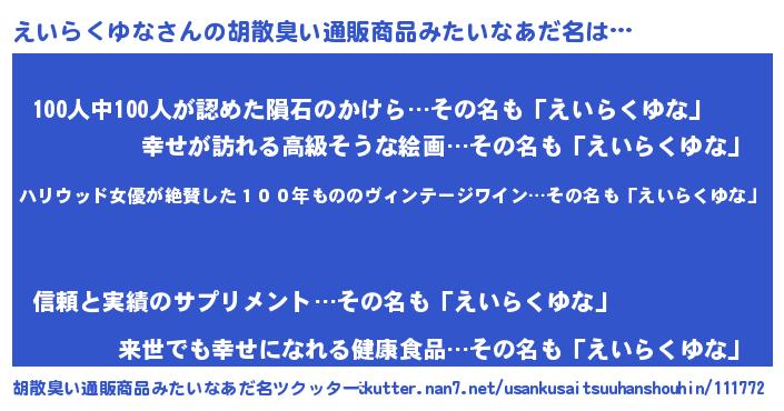 | 欧米人風あだ名 | 『ダレノガレえいらくゆな』 |
