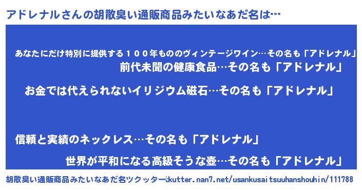 | 男性向けラノベタイトル風あだ名 | 『転生したらアドレナルだった件』 |