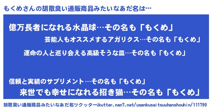 | 意味不明あだ名 | 『もくめフォーエバー』『ペロリンもくめ』 |