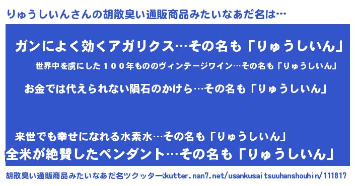 | ヘコむあだ名 | 『りゅぷりん』『りゅうしいん(笑)』 |