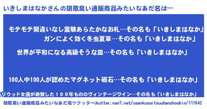 | 肩書あだ名 | 『いきしまはなか国家主席』 |