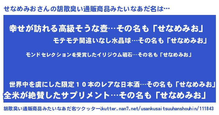 | 欧米人風あだ名 | 『ダニエルせなめみお』 |