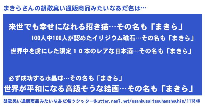 | 意味不明あだ名 | 『住所不定無職まきら(68歳)』 |
