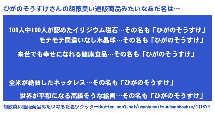 | 意味不明あだ名 | 『永久保存ひがのそうすけ』 |