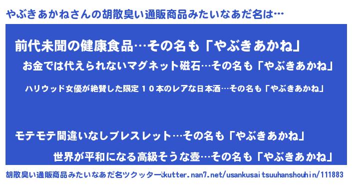 | 欧米人風あだ名 | 『ダレノガレやぶきあかね』 |