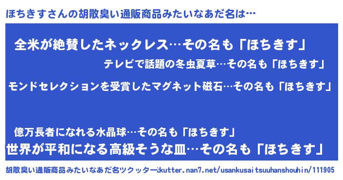 | 肩書あだ名 | 『ほちきす助教授』『ほちきす少将』 |