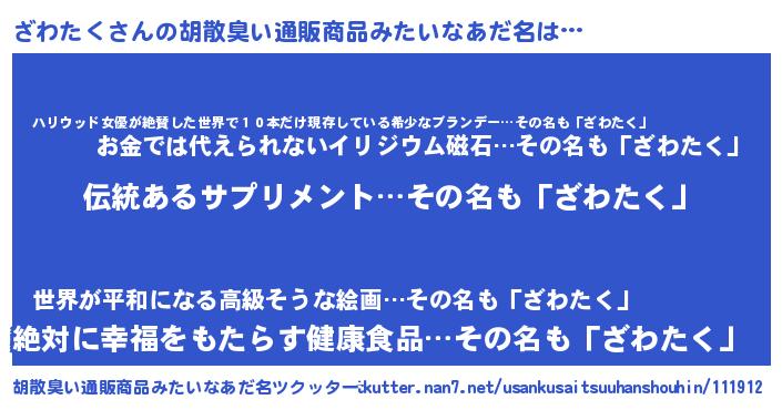 | 意味不明あだ名 | 『とにかく怪しいざわたく』 |