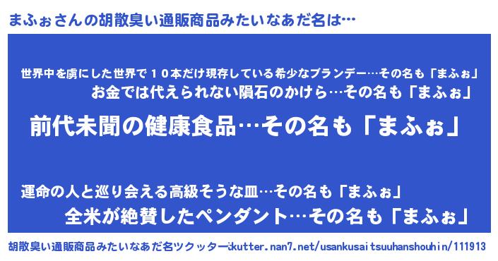 | ヘコむあだ名 | 『まふぉ(爆)』『まふっちょ』 |