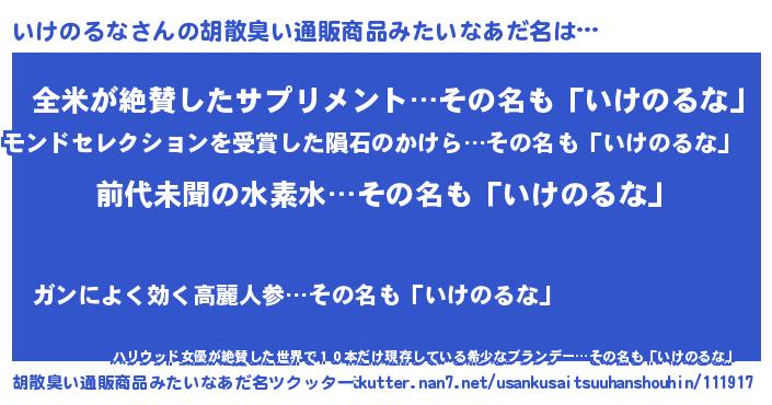 | 意味不明あだ名 | 『永久保存いけのるな』 |