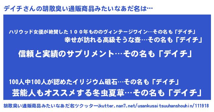 | 意味不明あだ名 | 『とにかく怪しいデイチ』『自称デイチ』 |