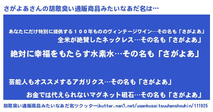 | ヘコむあだ名 | 『さがよあ(遠い目)』『さがを』 |