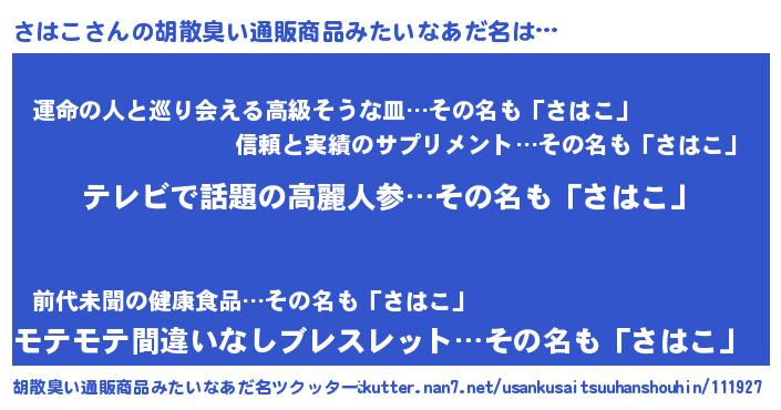 | 意味不明あだ名 | 『自称さはこ』『さはこフォーエバー』 |