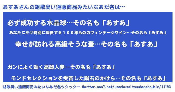 | 意味不明あだ名 | 『あすあフォーエバー』『ペロリンあすあ』 |