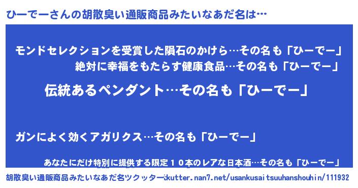 | ヘコむあだ名 | 『ひーぷりん』『ひーでー(遠い目)』 |