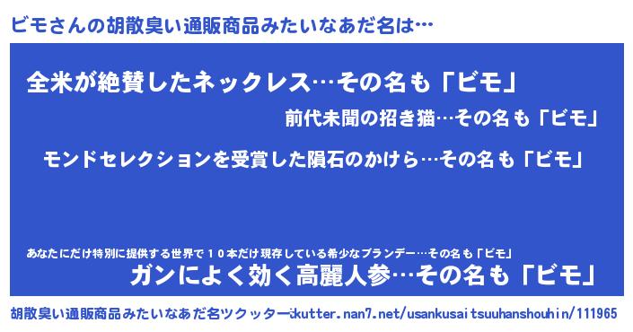 | ヒーロー風カッコイイあだ名 | 『天空の使者ビモ』『天弓騎士ビモ』 |