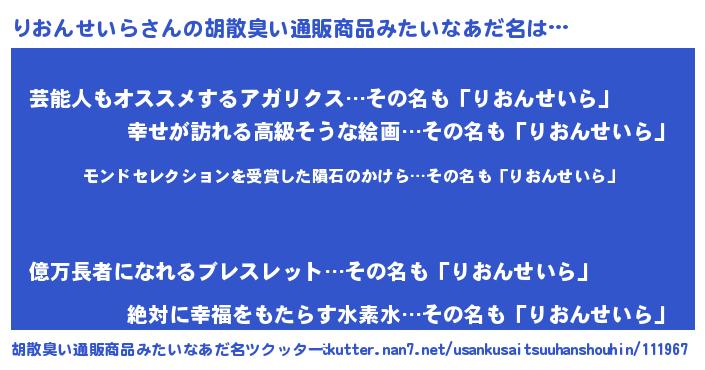 | 欧米人風あだ名 | 『ダニエルりおんせいら』 |