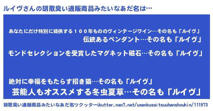 | 意味不明あだ名 | 『眠気覚ましガムルイヴ味』『自称ルイヴ』 |
