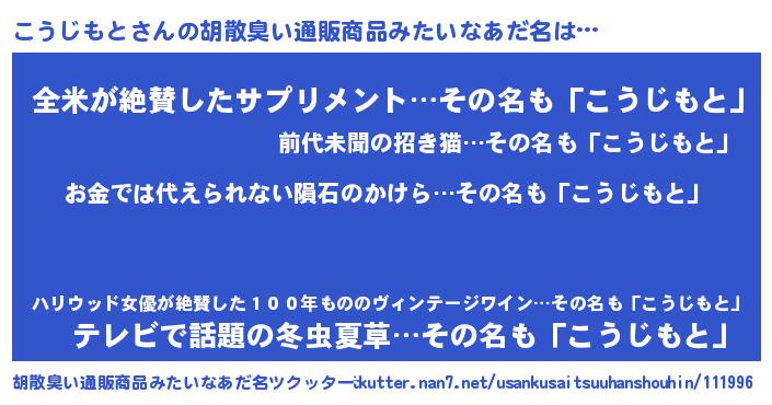 | ヘコむあだ名 | 『こうっちょ』『こうじもと(笑)』 |