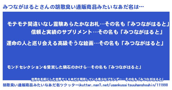 | ヘコむあだ名 | 『酢こんぶ』『みつっふぃ~』 |