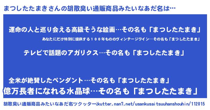 | 肩書あだ名 | 『まつしたたまき総統』 |