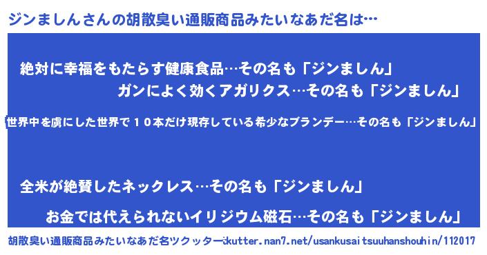 | ヘコむあだ名 | 『ジンましん(遠い目)』『ジンっぺ』 |