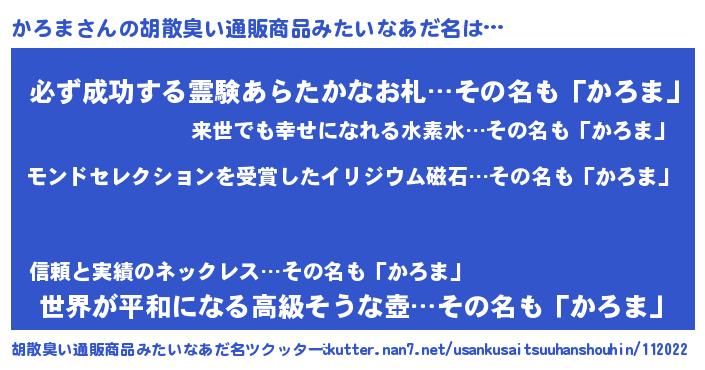 | ヘコむあだ名 | 『かろにゅー』『牛乳』『かろ太郎』 |