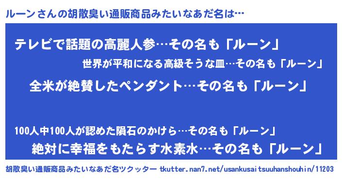 | 意味不明あだ名 | 『とにかく怪しいルーン』『自称ルーン』 |