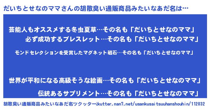 | 伝説のあだ名 | 『救世主となる技術者だいちとせなのママ』 |