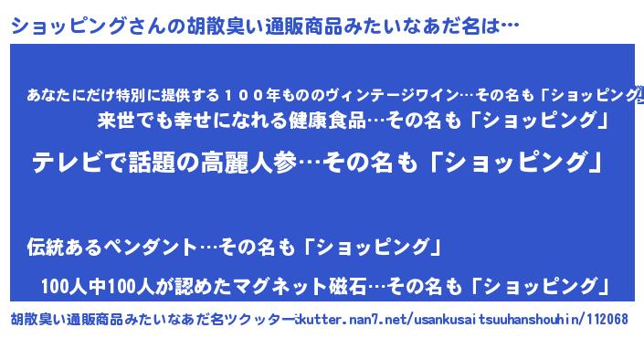 | 女子向けラノベタイトル風あだ名 | 『ショッピングアンティーク』 |