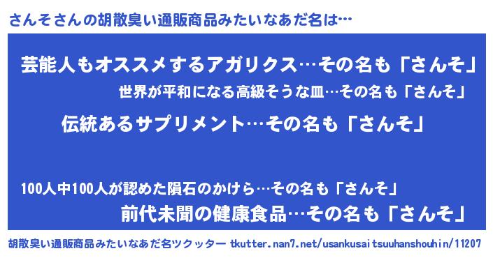 | ヘコむあだ名 | 『さん太郎』『さんそ(笑)』 |