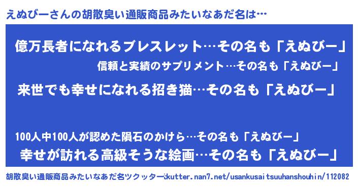 | 意味不明あだ名 | 『永久保存えぬびー』『ペロリンえぬびー』 |