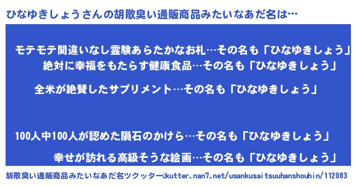 | 男性向けラノベタイトル風あだ名 | 『ひなゆきしょうの嫁は女の子じゃないと思った?』 |