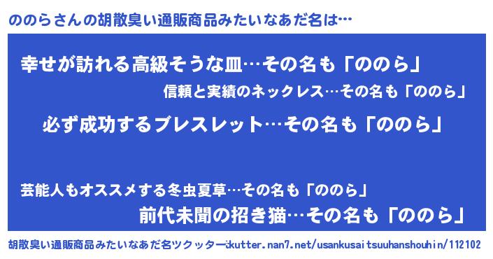 | ヘコむあだ名 | 『ののにー』『牛乳』『のの太郎』 |