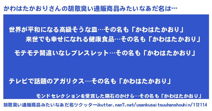 | 意味不明あだ名 | 『ペロリンかわはたかおり』 |